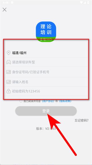 4、填写培训车型、身份证号码、姓名等信息,点击登录按钮,完成注册。