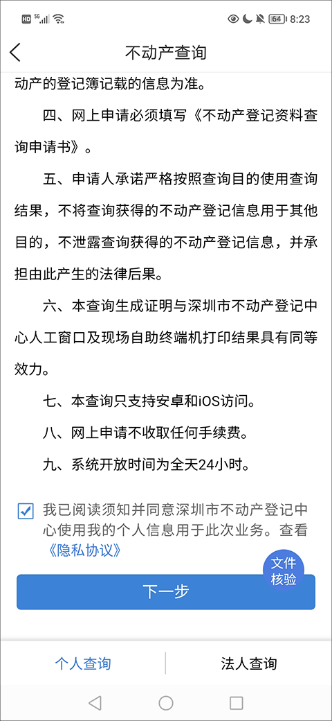 3、在页面底部勾选已阅读协议,点击【下一步】。