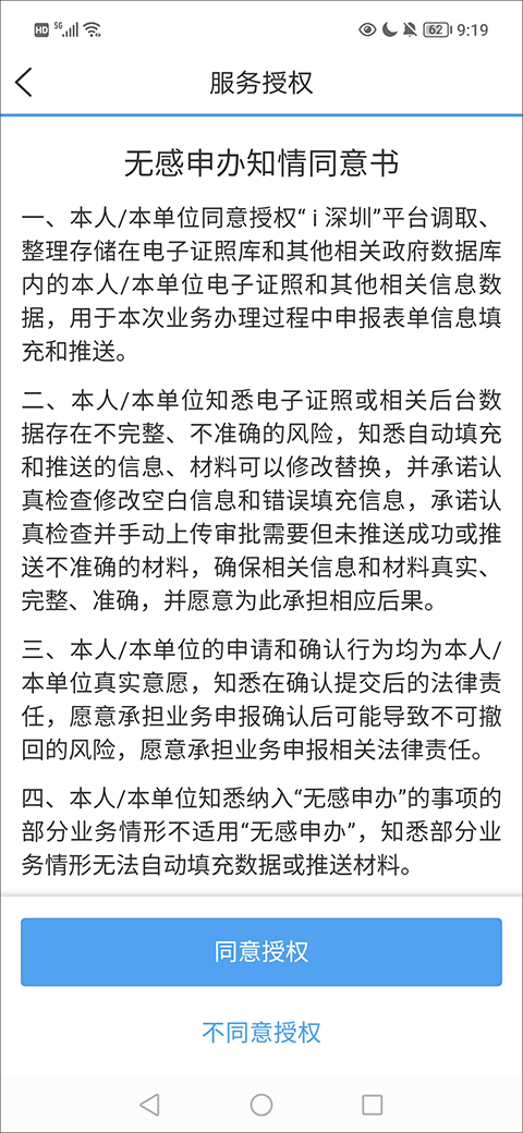 3、在服务授权界面,找到并点击“同意授权”选项。