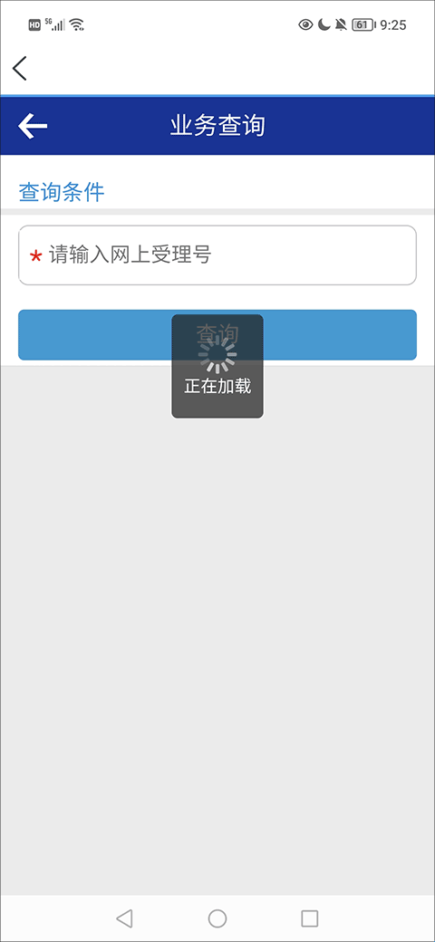 6、最后,用户在业务查询界面,输入网上受理号,点击查询按钮后即可完成查询。