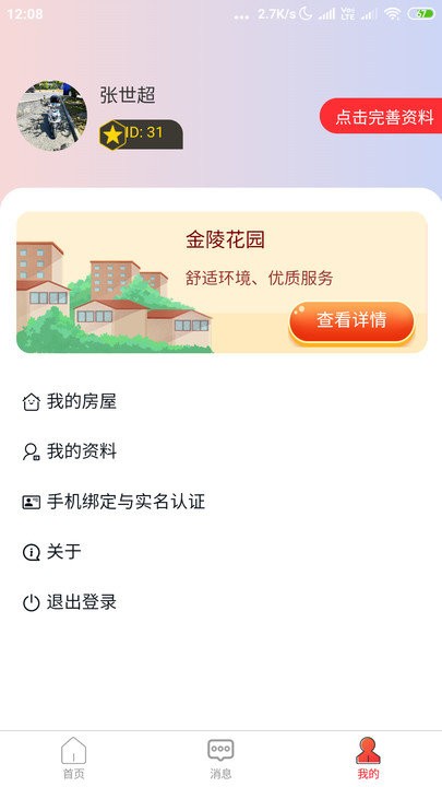 4、我的页面集中管理房屋信息、个人资料维护、问题反馈提交、关于平台介绍及隐私设置查看。