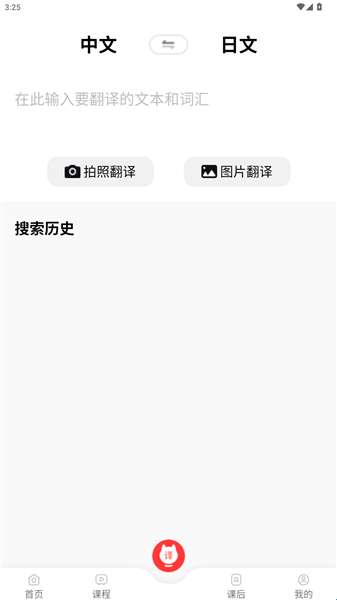 5、底部中间是软件的翻译功能,可以在这里进行拍照翻译或者文本翻译。