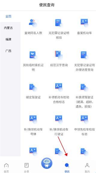 6、推出查询同名人数、查询规范汉字、开具民航乘机临时身份证明、查询网站备案、绑定机动车等多项特色应用