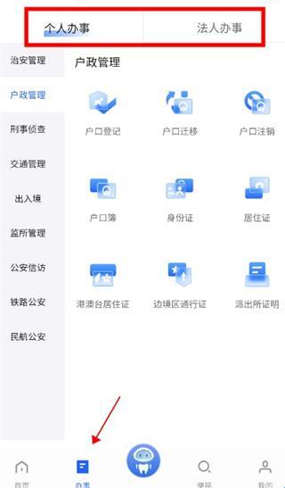 2、点击“办事”,这里有个人办事和法人办事,可以选择自己想要的服务。