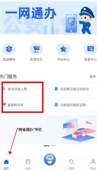 公安一网通办是公安部为方便群众办理公安政务服务所推出的一款便民手机客户端,app主要用于服务各地区、各警种政务服务移动端办事的总枢纽和总入口,为企业群众提供方便、快捷、高效的跨地域、多警种的公安政务服务。软件方便企业群众掌上了解办事细则,明明白白办事,减少跑动次数。整合了全国各级公安机关移动端政务服务能力,群众无需重复登录多个APP便可享受各公安政务服务移动端应用。另外软件还推出查询同名人数、查询规范汉字、开具民航乘机临时身份证明、查询网站备案、绑定机动车等多项特色功能,方便群众随时随地办理常用高频事项。