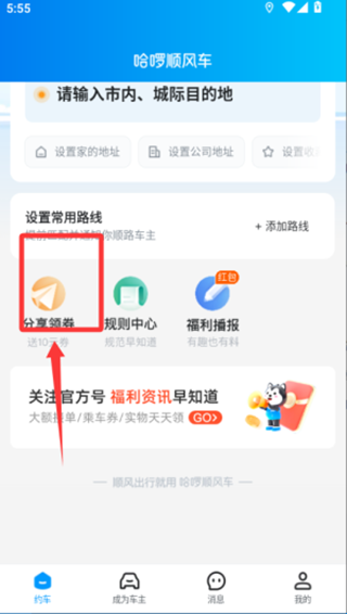 3、上车后确认行程开始,到达目的地在线支付费用,评价行程体验并领取优惠券用于下次使用。