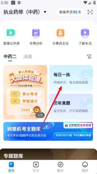 2、然后选择每日一练。