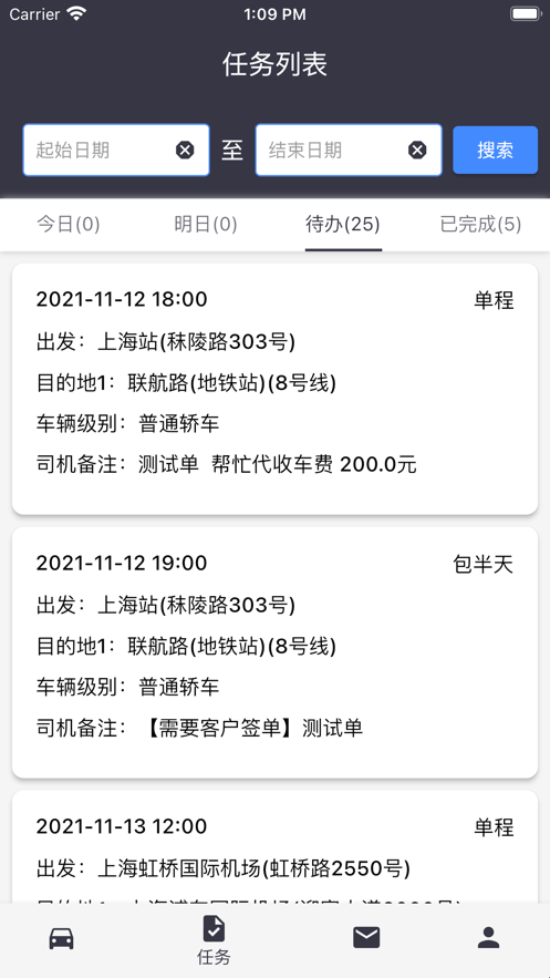 3、任务搜索:可自行选择起止时间搜索任务订单,便于找到能服务的订单。