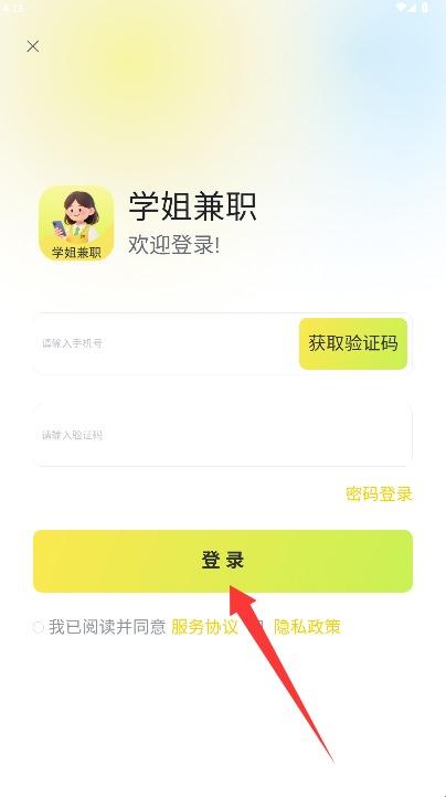2、在登录页面输入手机号和短信验证码,勾选同意相关条款后点击登录按钮进入。