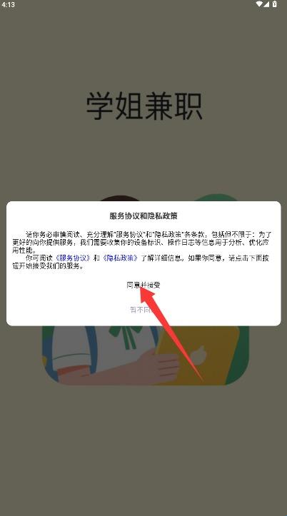 1、初次使用需阅读平台服务条款与隐私政策,确认后点击同意并接受选项进入。