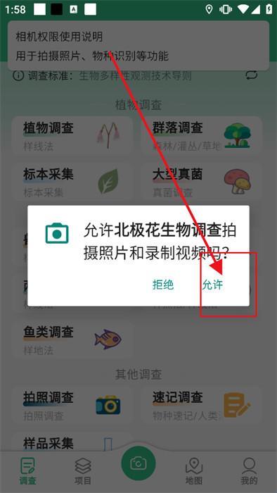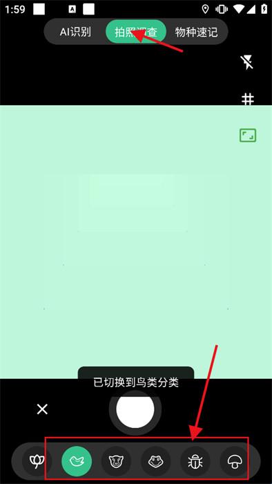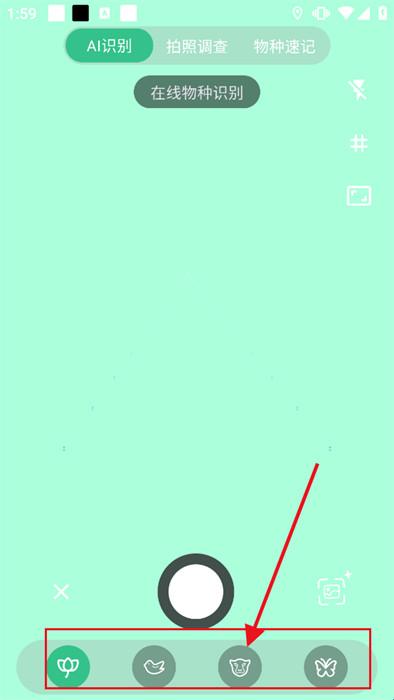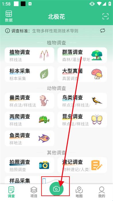 5、最后,如果你想要拍照调查,需要点击最下方的图标来记录这些生物的类型,并让记录的信息更全面。