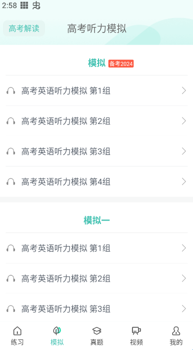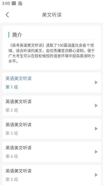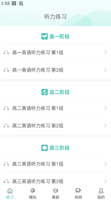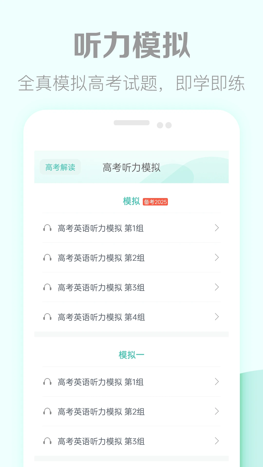 2、内容包括高考听力的训练、模拟和真题。每套听力试题都有高清的配音,全真模拟考试流程,智能答题检测系统。