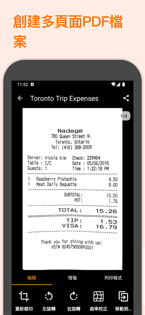 1、可检测页面边框、裁剪并更正角度:无需拍得很正,精灵扫描会消除不必要的背景。