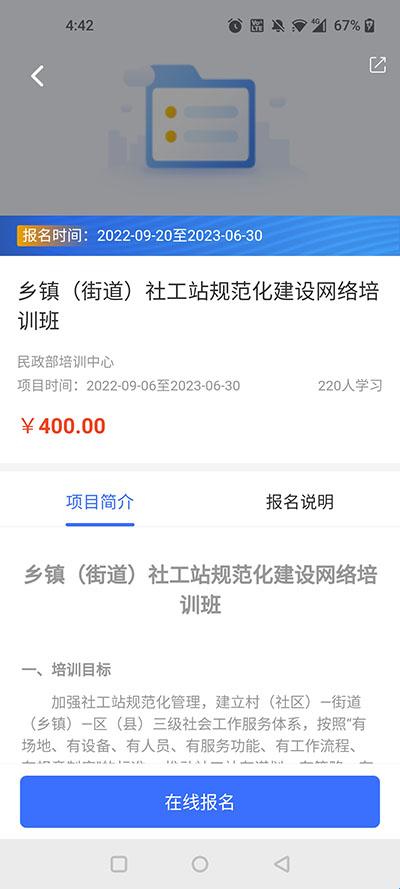 3、最终点击在线报名,就可以学习相关的培训内容了!