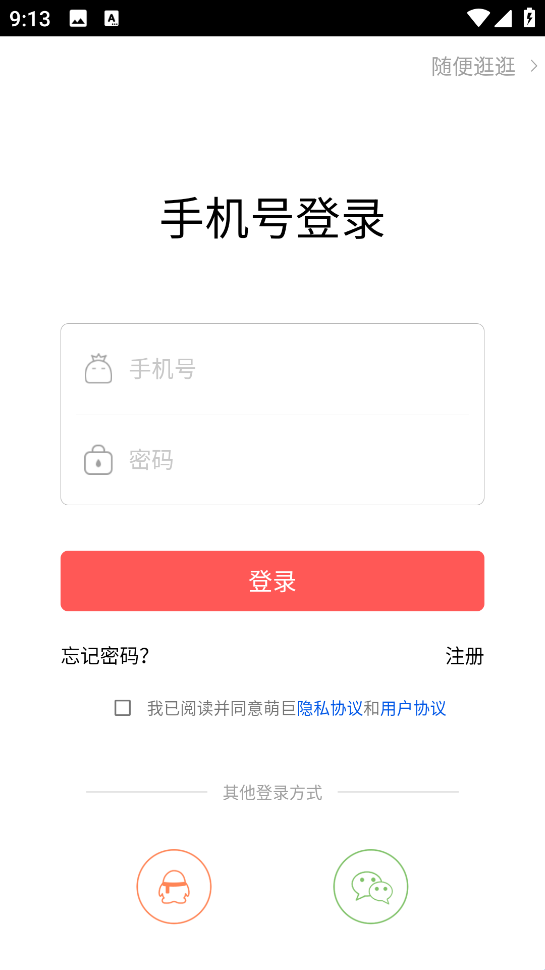2.输入手机号和密码可以直接登录,没有账号的点击注册。