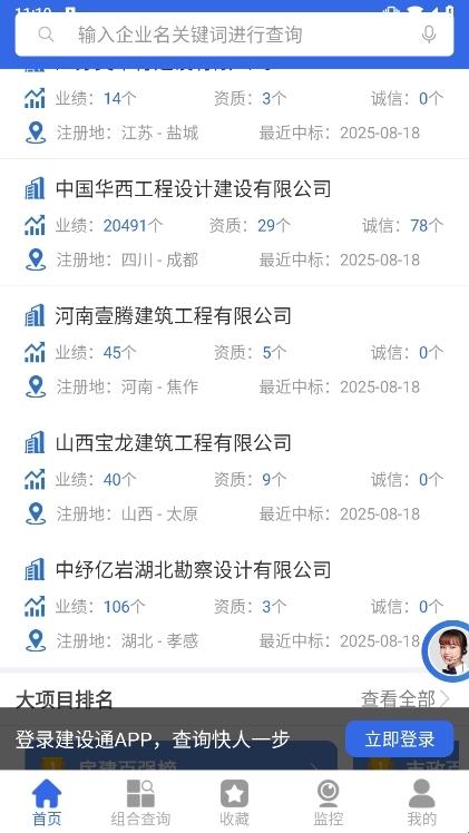 组合查询:通过地区、资质、业绩等条件筛选目标企业。
