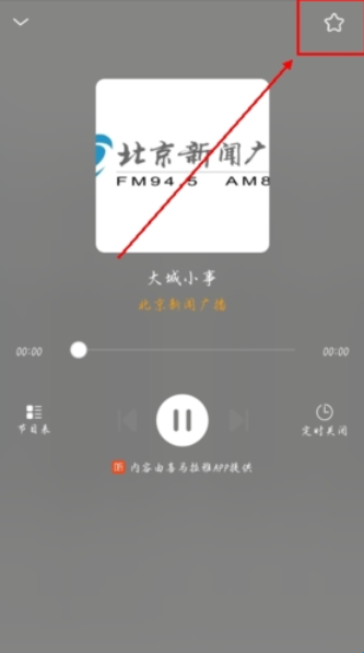 2、之后再收听的界面,可以看到右上角【收藏】选项,点击即可收藏。