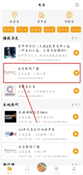 1、依旧还是在app上寻找并点击要收听的广播;