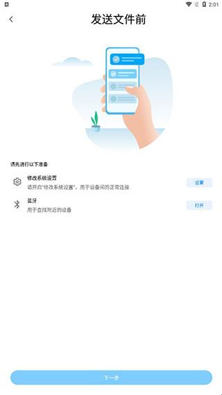 3、发送文件前我们需要开启一些权限,然后点击下一步。
