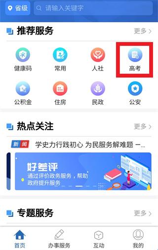 第三步:点击“高考”,选择“高考成绩查询”,然后输入考生相关身份信息后即可查询。
