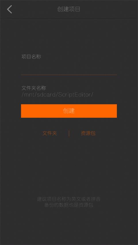 2、填写项目名称和文件夹名称;