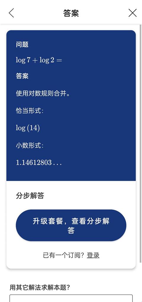 4、这样问题的答案就出来了,升级套餐还可以查看解题步骤