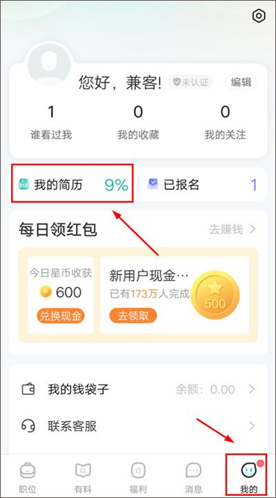 为了方便用户求职,只要完善个人信息即可直接报名,或进入【我的】,点击“我的简历”完善个人简历。