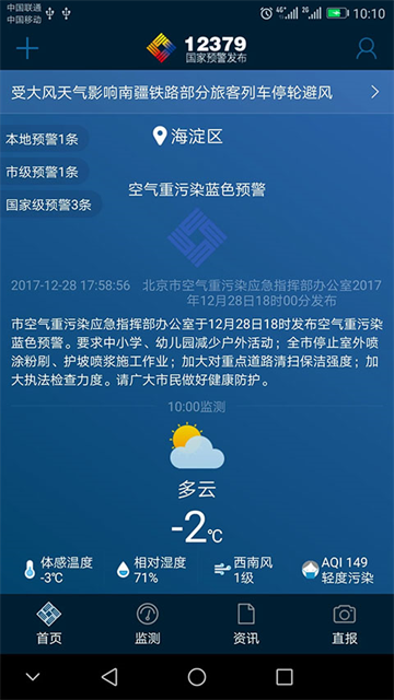 4、他以“第一声音、权威声音”为行动指南,为用户提供自然灾害、事故灾难、公共卫生事件、社会安全事件四大类预警信息推送服务,同时提供各类实况监测、天气预报、突发事件资讯等服务。