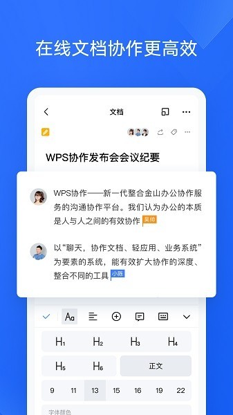 1、真正的互联网时代的办公协作助力企业高速发展,实用简单支持多人同时编辑文档