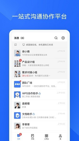 金山协作又叫WPS协作,是一款非常好用的办公软件,这款软件的功能十分强大,软件内拥有视频互译、群聊等多种功能,方便你对接工作,避免一些工作失误,还支持在线进行文档的编辑,还有各种类型的模板,用户可以根据需求选择,十分方便,适用于多种不同的办公场合,可以满足不同的办公需求,有兴趣的朋友欢迎下载体验哦。
