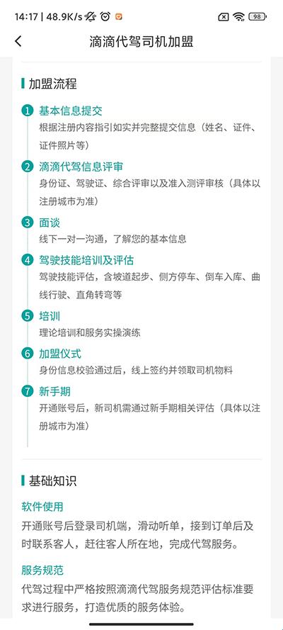 7、由于滴滴代驾是一个服务行业,因此身体上不能有明显的疤痕和纹身等。