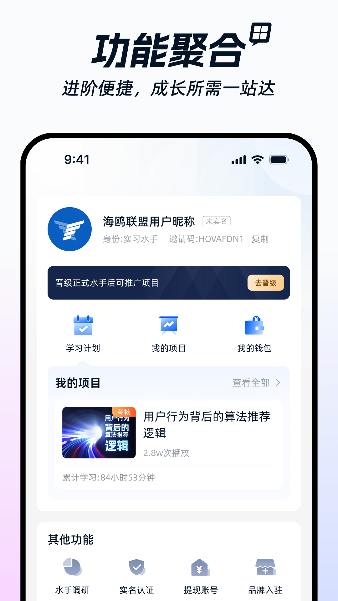 1、阶梯式晋升体系:根据个人成长和贡献,提供从“实习海鸥”到“船长”的晋升路径,提供资源与收益分成支持。