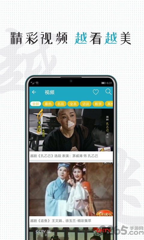 (5)精选越剧演出视频,综艺节目,名家名段及全本大戏,教学视频,戏曲艺术家即兴表演,戏迷表演等。
