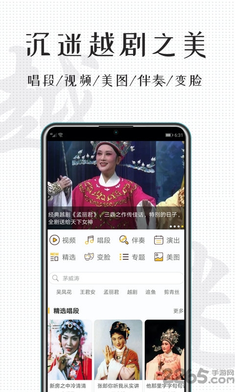 戏曲戏剧大全,戏曲唱段视频大全,戏曲唱腔身段舞蹈教学大全,学戏唱戏伴奏大全,高品质戏曲库传承传统文化。拥有经典戏曲唱段音乐、精彩戏曲视频、精选伴奏唱词、精美剧照、戏曲换装变脸游戏等丰富的越剧戏曲资源,是您休闲娱乐的好伴侣。越剧迷支持列表播放和单曲循环,可以作为工作学习、悠闲娱乐、放松冥想、运动健身、瑜伽广场舞的背景音乐,也可以作为汽车CD播放,是开车必备音乐。
