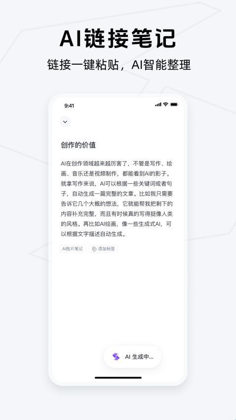 链接AI速记:添加一条链接后,AI将自动进行链接解析,生成结构化的笔记