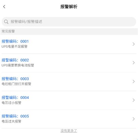 4、报警解析:对设备异常故障情况进行报警解析,用户可以对各种设备异常的报警解析详情进行查看了解。