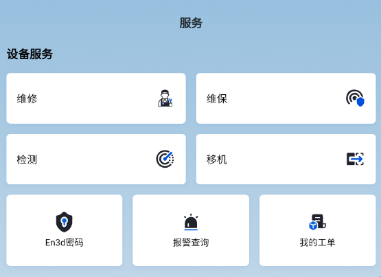 1、设备报修:选择设备报修服务,用户可以对各种故障的设备直接在线进行一键报修处理。