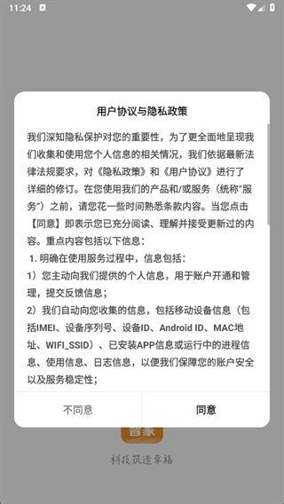 1、打开应用后仔细阅读用户协议和隐私政策,确认后点击同意按钮进入应用。
