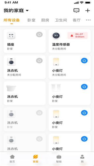 4、点击家庭板块可以根据家里的设备分类添加设备,同样也是点击右上角的加号开始添加。