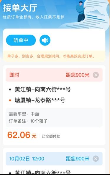 4、实时更新:这里更多的订单信息都会进行实时更新,让你可以查看最新的订单,更好的接到新的订单。