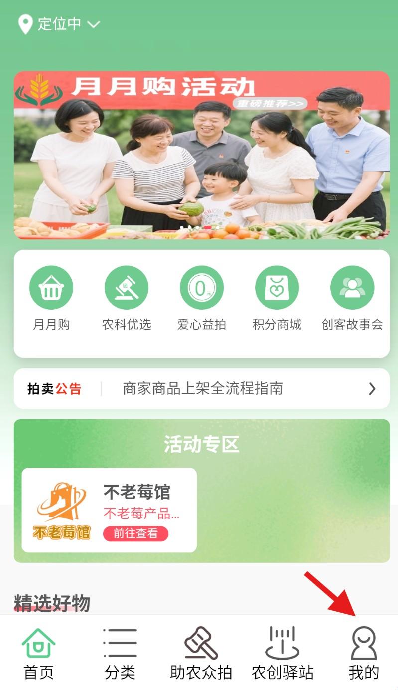 1、启动宙农拍卖应用程序,于底部导航栏里选取“我的”按钮并轻触,以此进入个人功能专属界面。