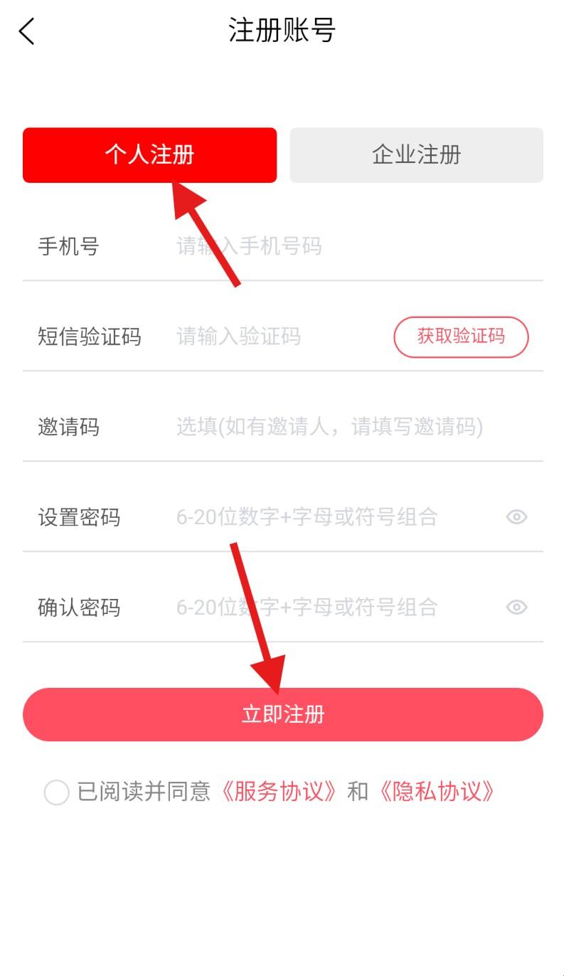 4、在注册界面中,选择“个人注册”选项,依照提示填写姓名、手机号等必要信息,仔细核对无误后,点击“立即注册”按钮,即可完成注册流程。