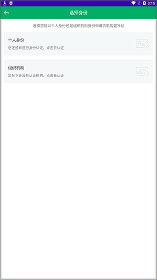 3、选择您的身份,可使用您的个人身份或是进行组织机构认证。
