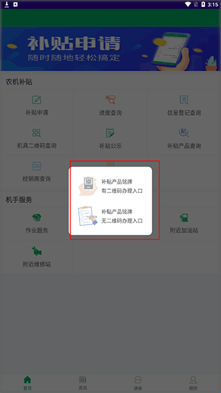1、打开甘肃农机补贴app官方版,进入首页点击申请补贴。