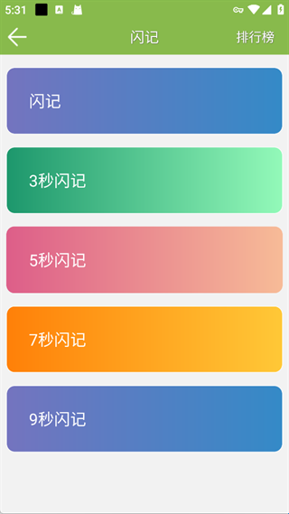 2、这边以【闪记】为例细分了3秒、5秒、7秒、9秒不同时长的闪记训练,用户可根据自身情况选择。
