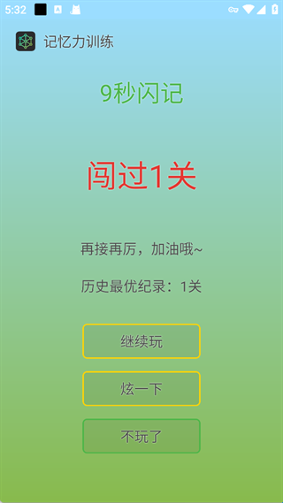4、每次闯关会记录关卡数,可选择继续玩、分享成绩或结束游戏。