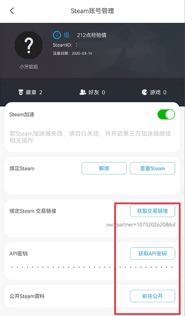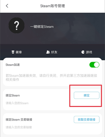 2、绑定Steam账号:在账号管理界面,选择绑定Steam账号,并进行登录绑定。