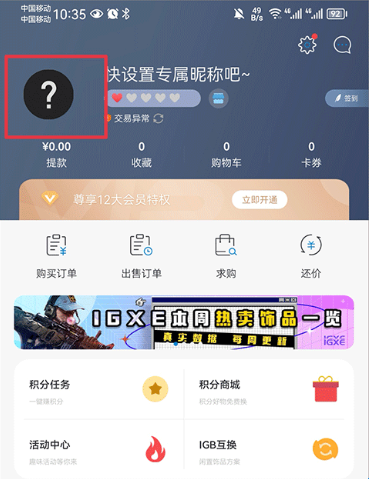 1、打开应用并登录:打开igxe电竞饰品交易平台app,进入“我的”界面,点击头像进行登录。