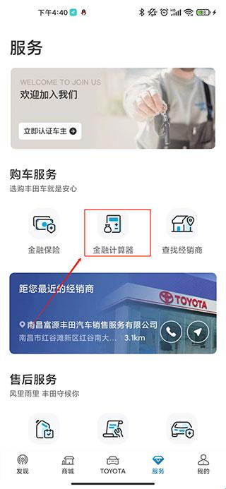 进入服务功能后,点击金融计算器
