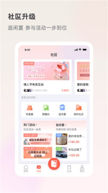 3、邻里社群:比邻而居,分享所见;邻里互助,乐享生活。